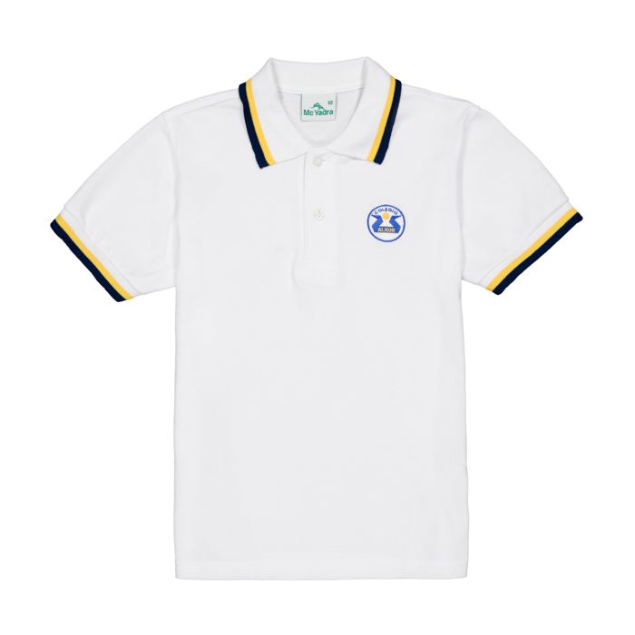 - Polo colegial de manga corta, realizado en pique con cuello y parte final de las mangas en canalé.