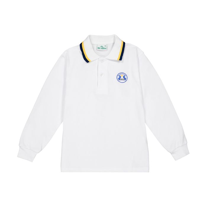 - Polo colegial de manga larga, realizado en piqué con cuello de canalé, puños de elástico